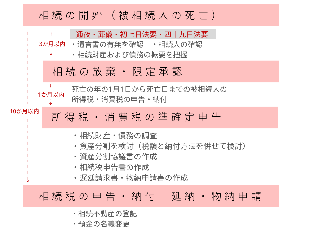 ここでは相続時の申告手続きスケジュールを大まかにご説明いたしますので、ご参考になさってください。